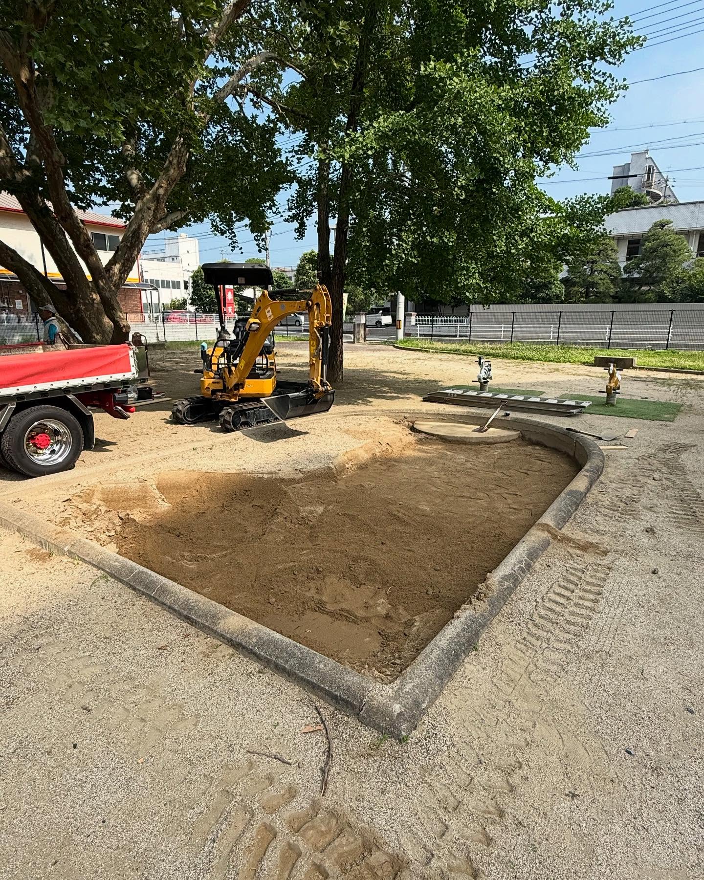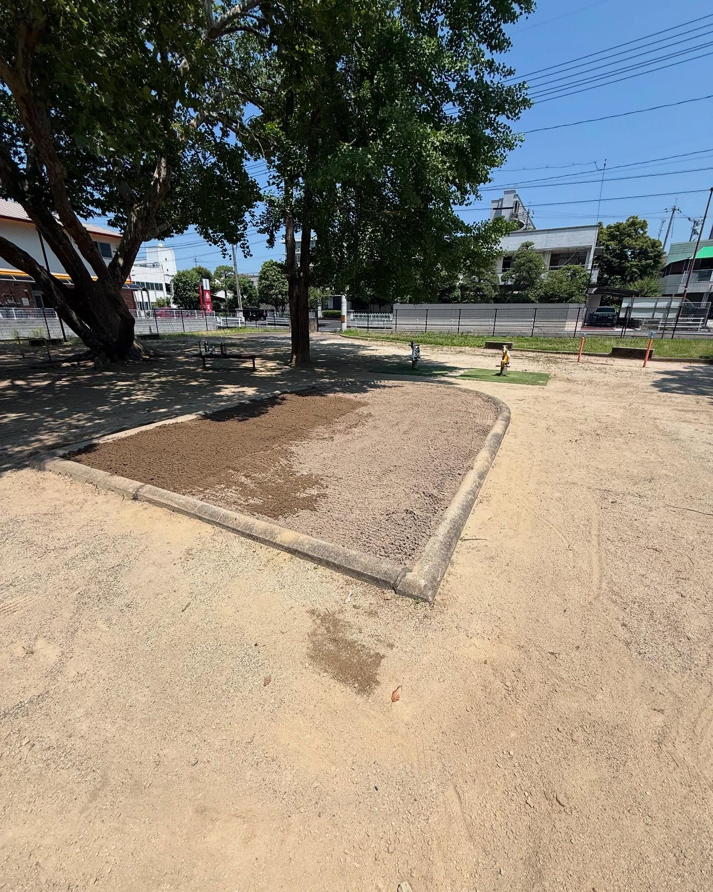 少し前ですが、市内山下の児童公園内の砂場を整備させて頂きました。