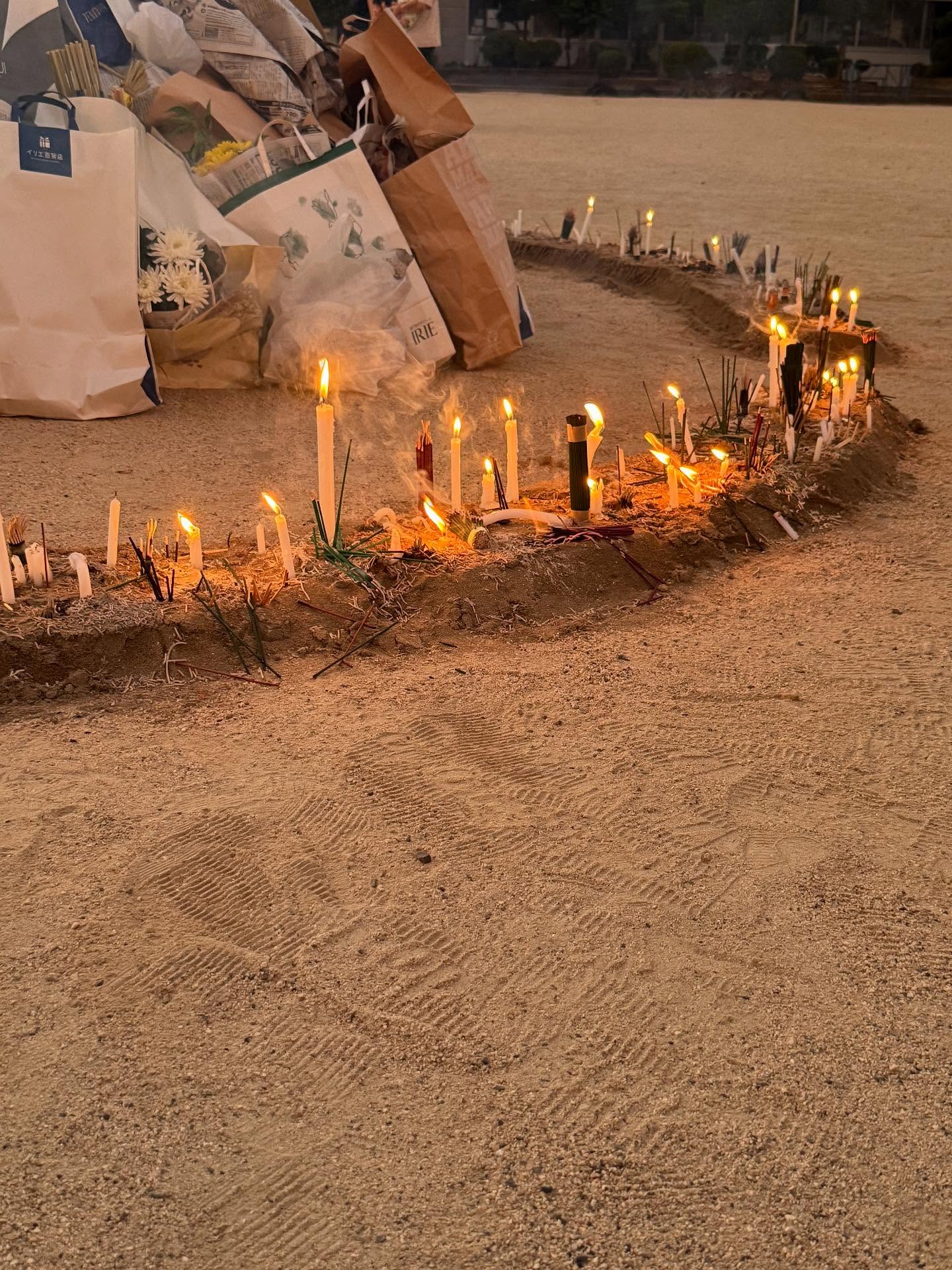 夕暮れ時の線香の匂い、ロウソクの火がまた幻想的な雰囲気を出してました。