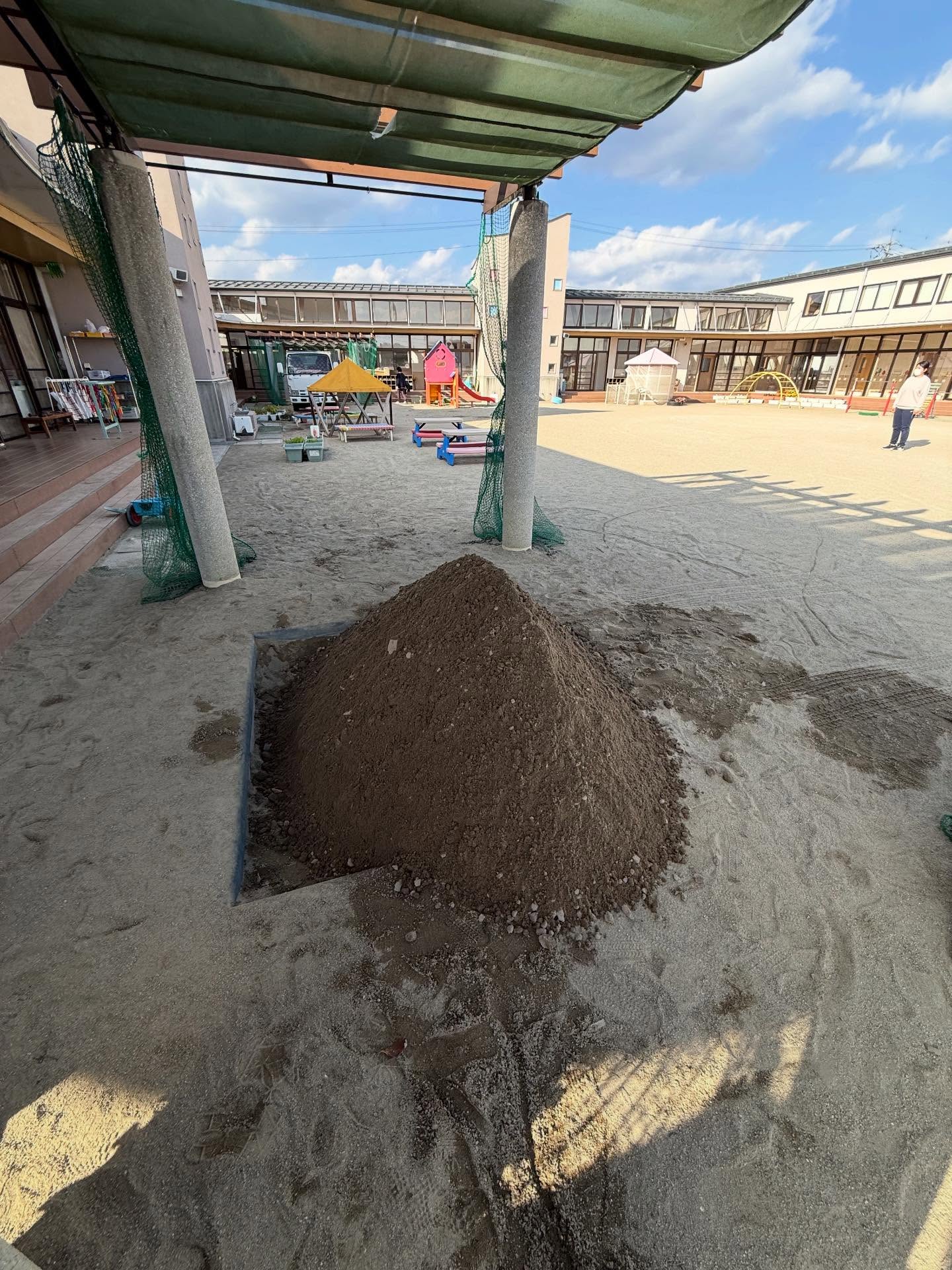 また、市内幼稚園様より細目砂の補充のご依頼で、配達して来ました。